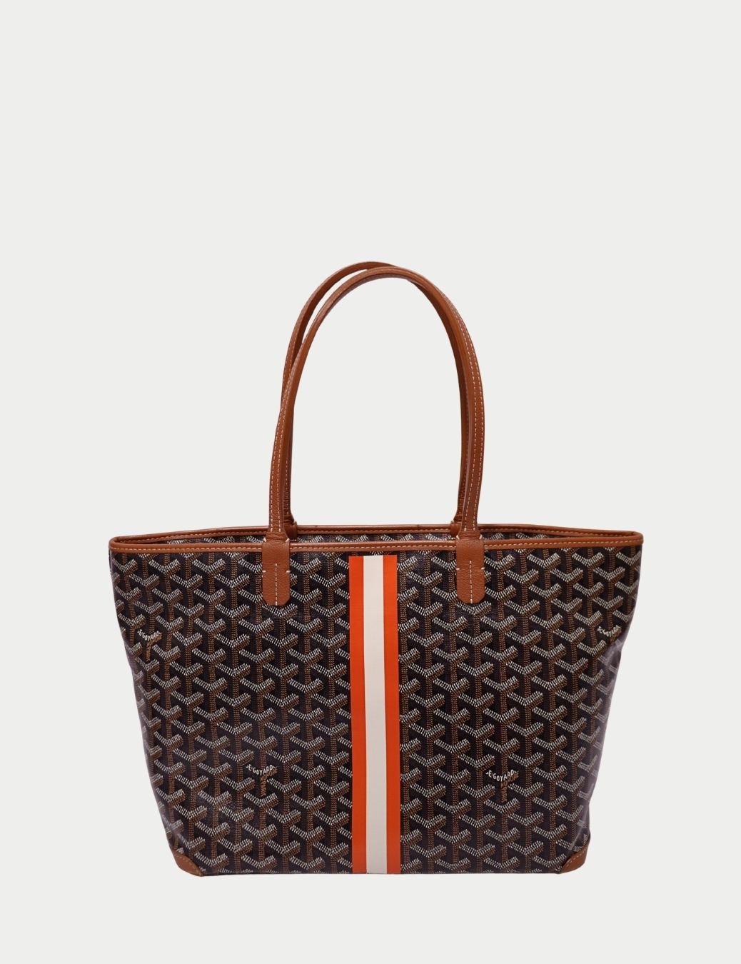 Finished with a bold vertical stripe detail, this bag blends heritage craftsmanship with modern individuality. A highly sought-after piece from Goyard, known for its exclusivity and artisanal tradition.