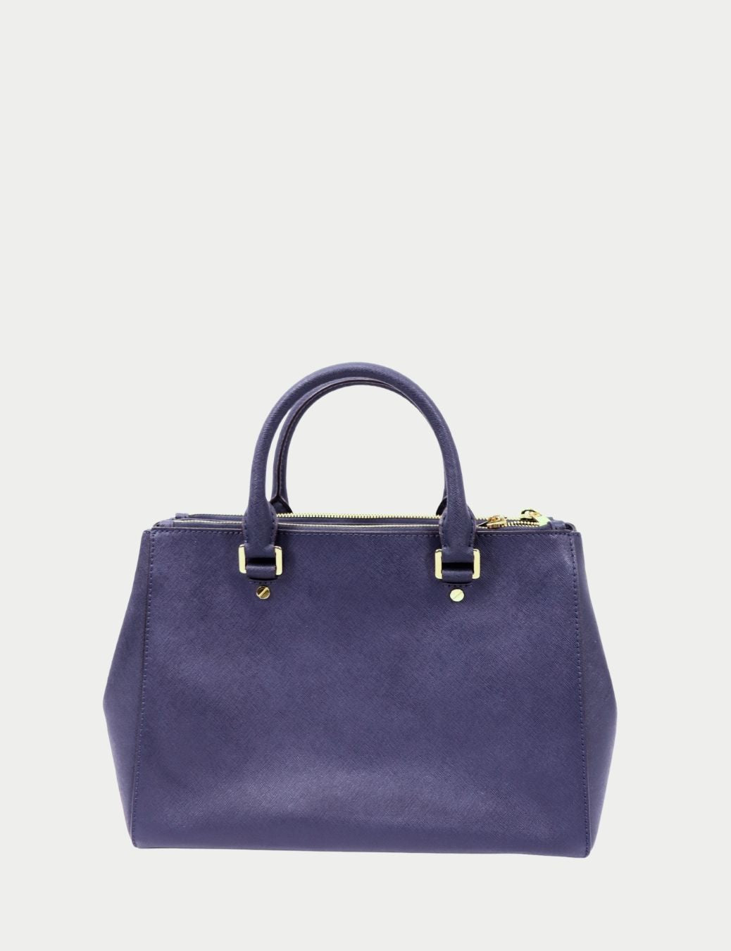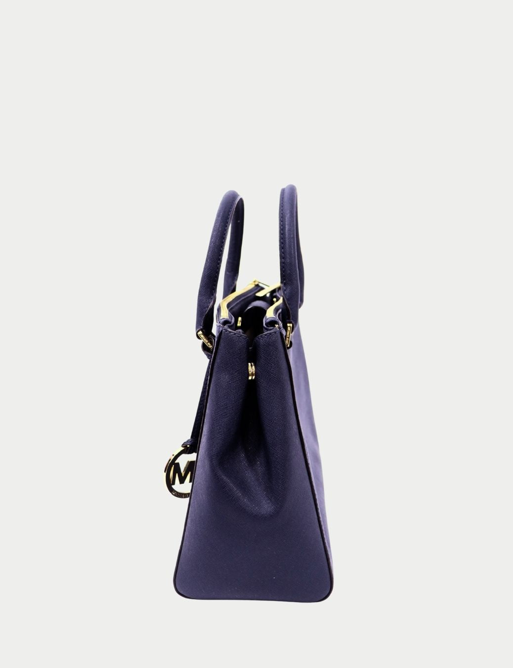 Timeless and sophisticated, this Michael Kors structured satchel is crafted from durable saffiano leather in a rich navy tone. Designed with dual top handles, a spacious interior, and finished with polished gold-tone hardware and signature logo detailing, this bag offers both practicality and refined style.