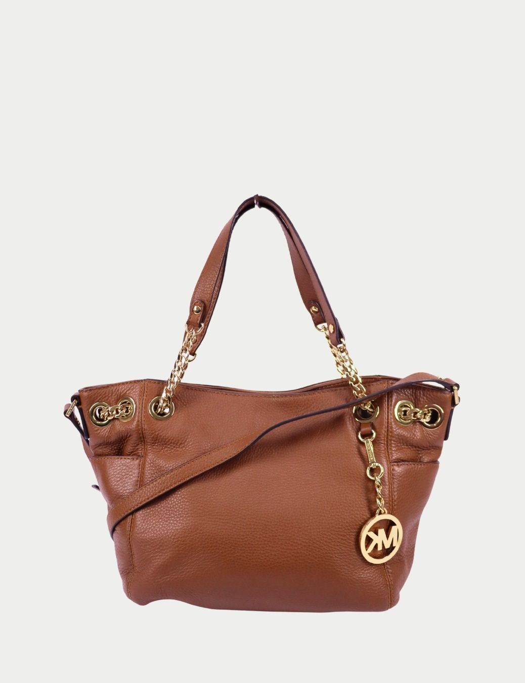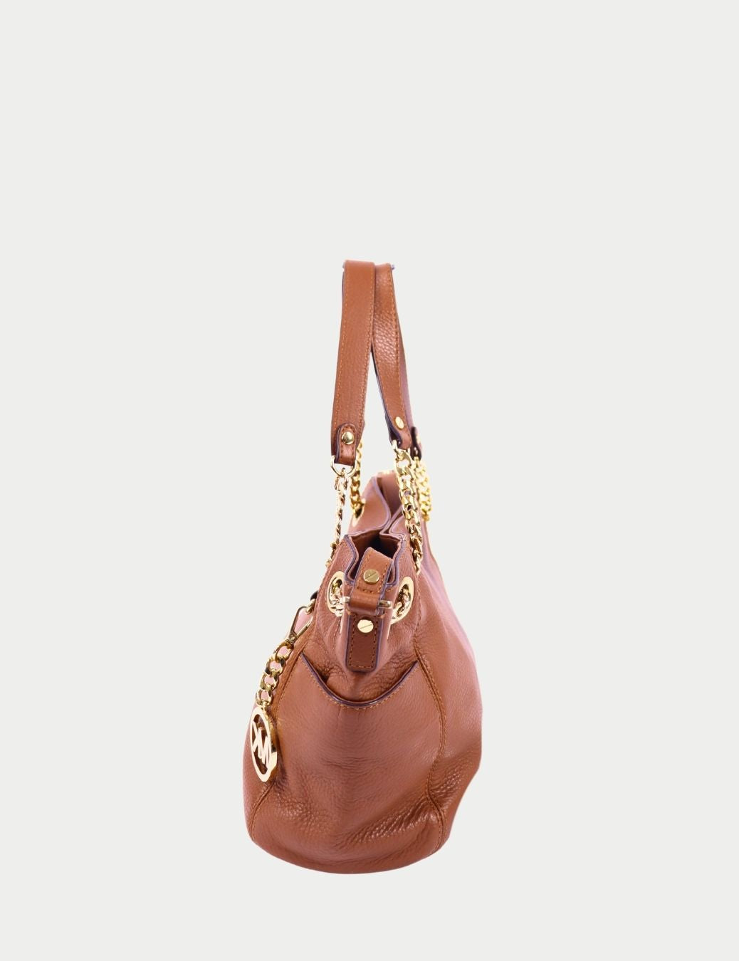 Michael Kors Brown Pebbled Leather Chain Shoulder Bag with Gold Hardware
