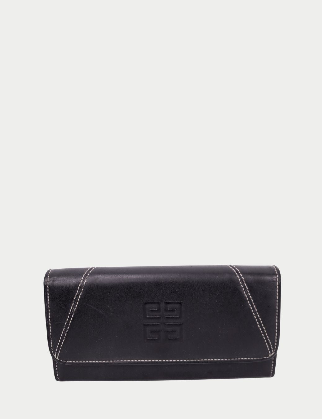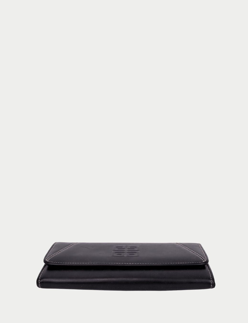 Elegant and understated, this Givenchy black leather long wallet showcases timeless Parisian design with its clean lines and subtle embossed logo. Crafted from smooth leather with refined contrast stitching, it offers a sleek silhouette while providing practical organization for everyday essentials. A sophisticated accessory that pairs effortlessly with both classic and modern wardrobes.
