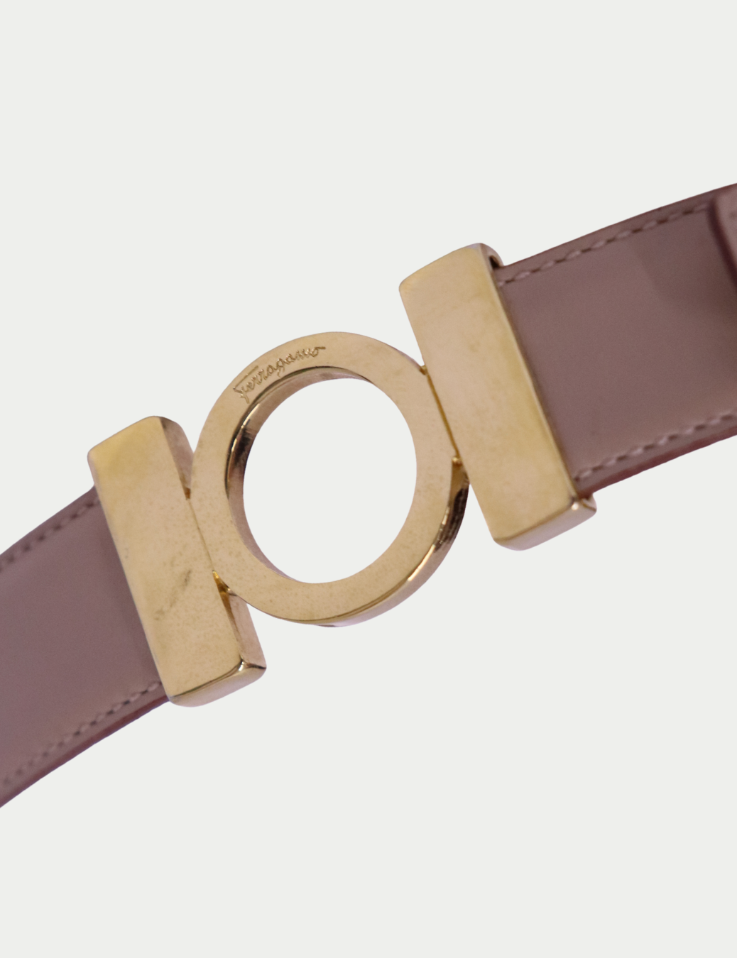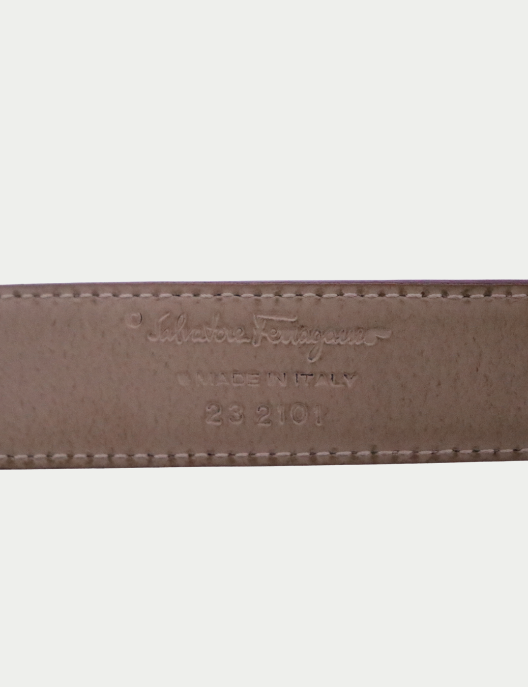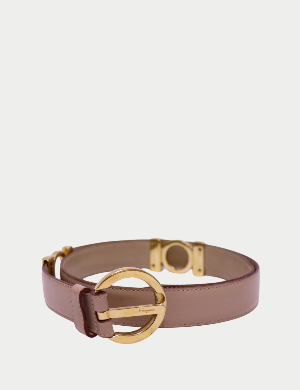 Salvatore Ferragamo Taupe Leather Belt with Gold Hardware