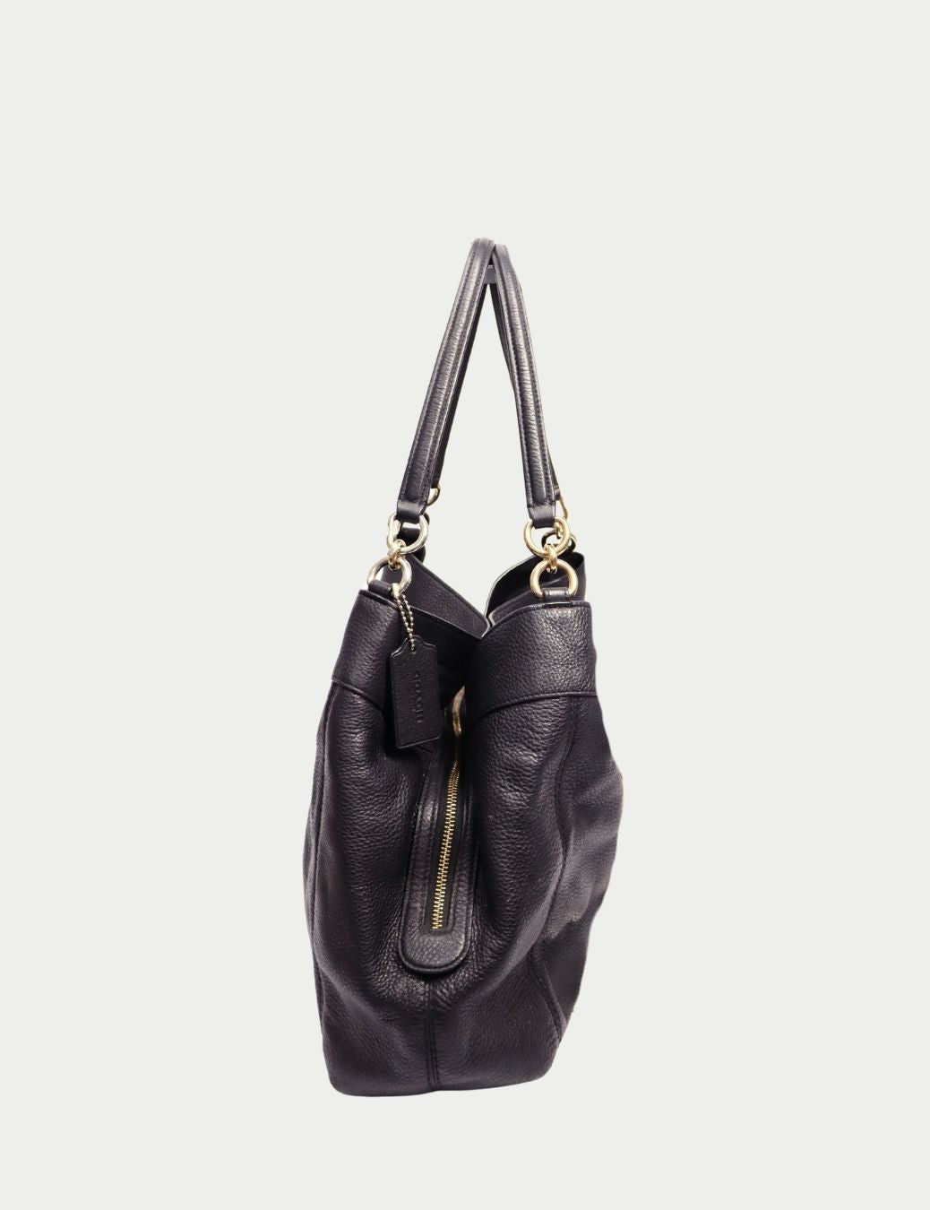 Upgrade your daily essentials with this Coach black pebbled leather shoulder bag, crafted from soft textured leather and finished with polished gold-tone hardware for a refined, everyday look.