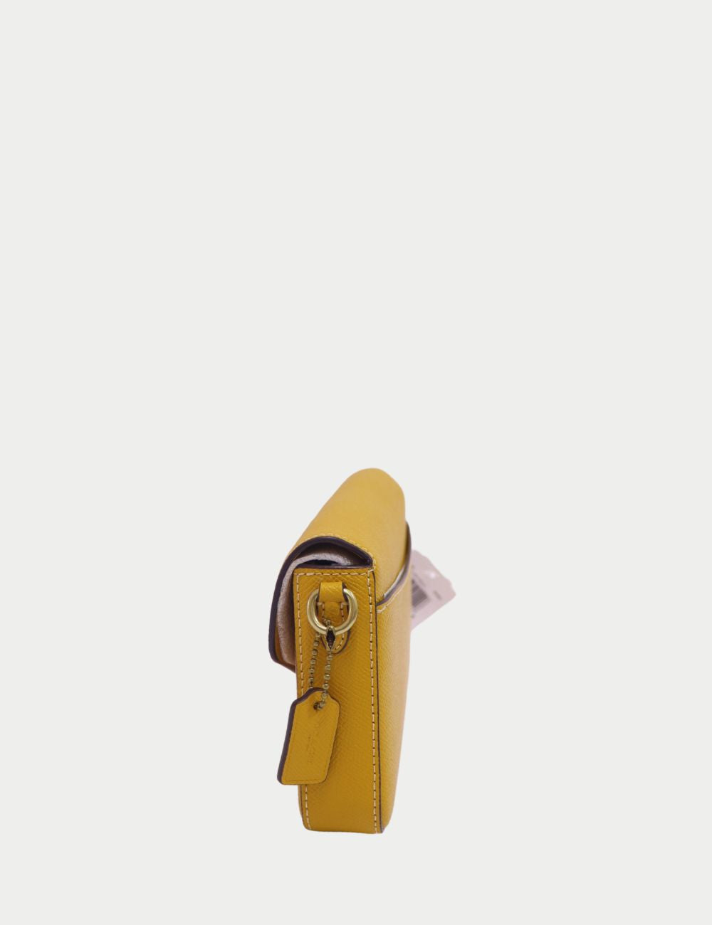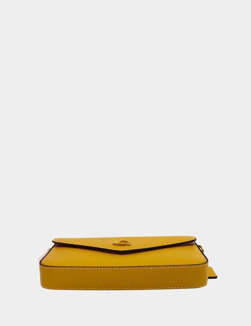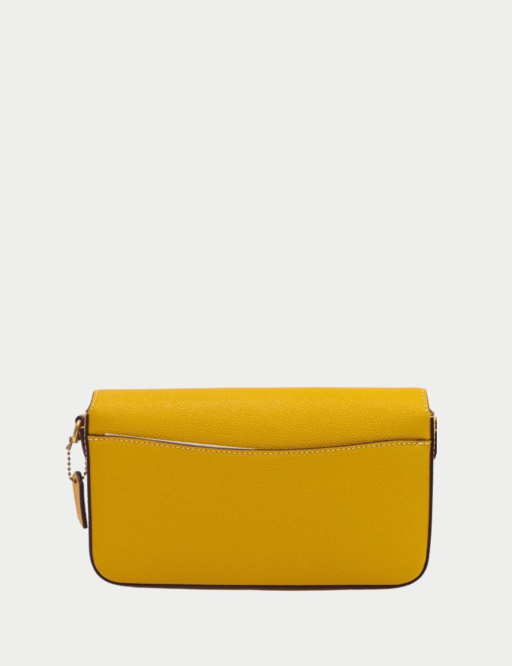 Add a pop of sunshine to your wardrobe with this Coach Yellow Crossbody Bag. Crafted from durable pebbled leather, this sleek bag features a structured silhouette and flap closure with the signature embossed C logo.