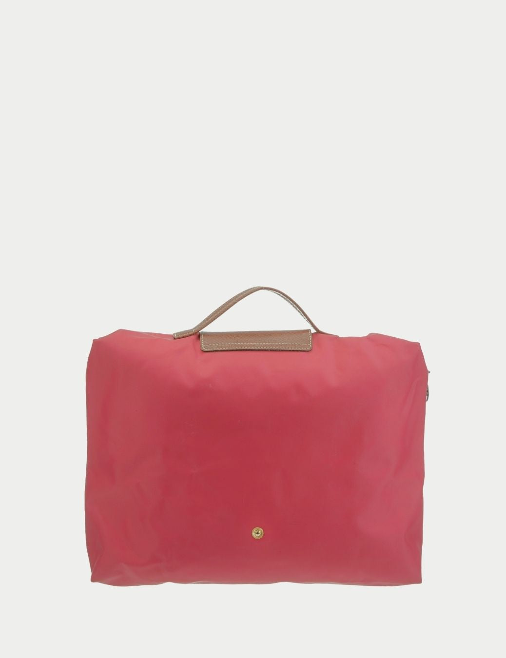 Longchamp Le Pliage Red Nylon Briefcase with Brown Leather Trim