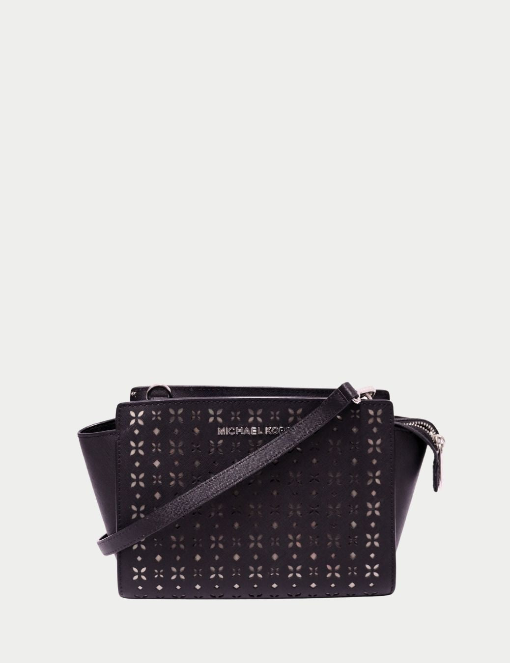 Michael Kors Black Laser-Cut Leather Crossbody Bag | Silver Hardware