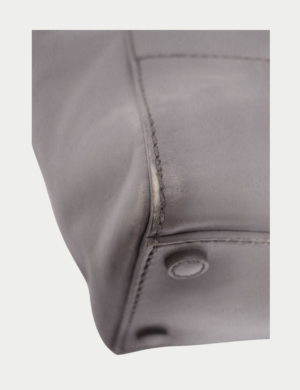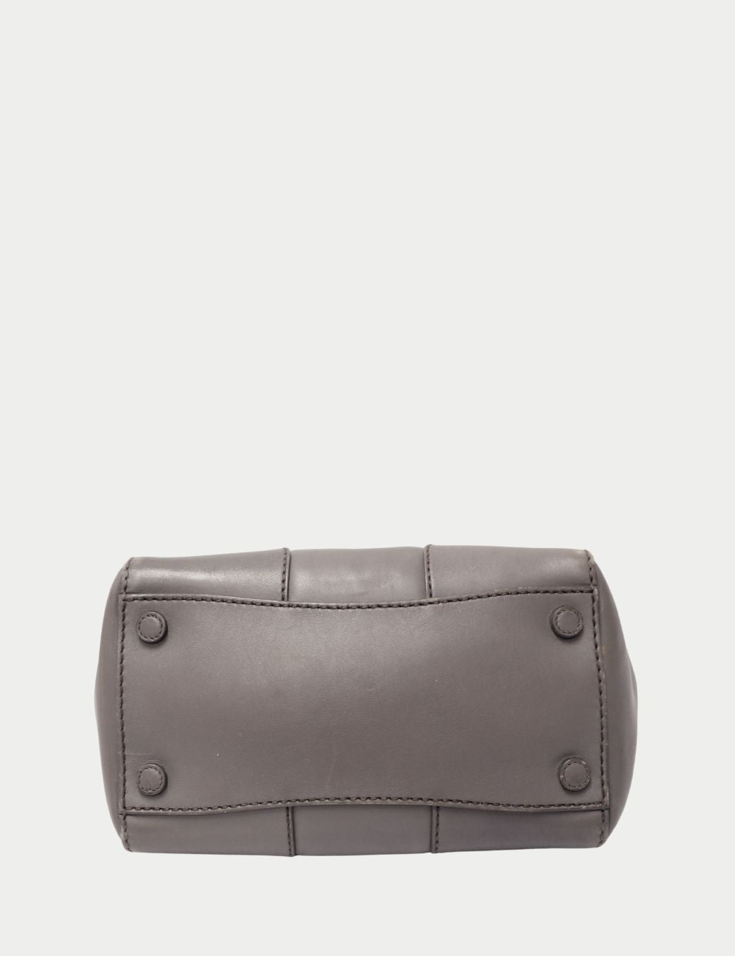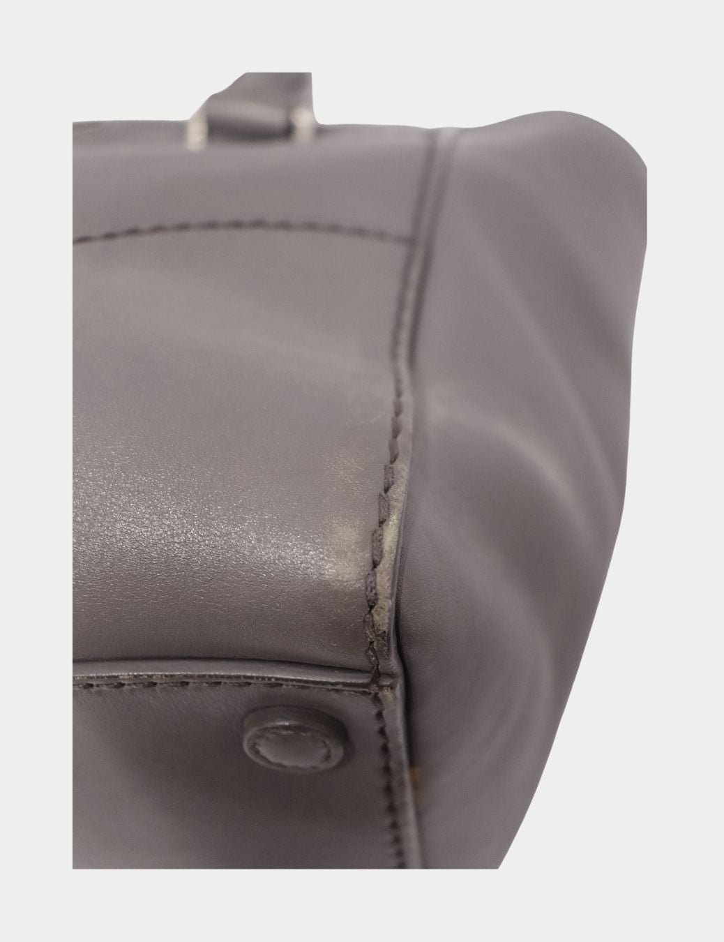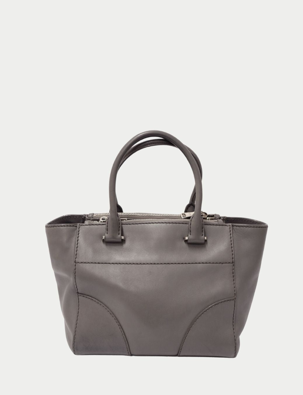 Prada Grey Leather Handbag with Top Handles and Silver Logo Plaque