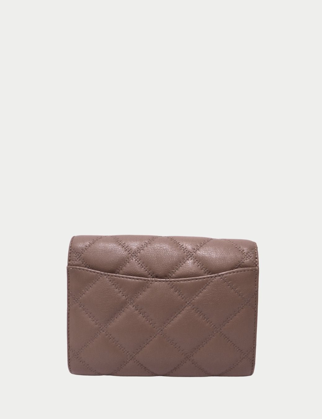 Effortless sophistication meets everyday functionality in this Tory Burch tan crossbody bag, designed in luxuriously soft quilted leather. The sleek rectangular silhouette is accented with the brand’s signature double-T logo in gold-tone hardware, adding a polished touch of elegance.
