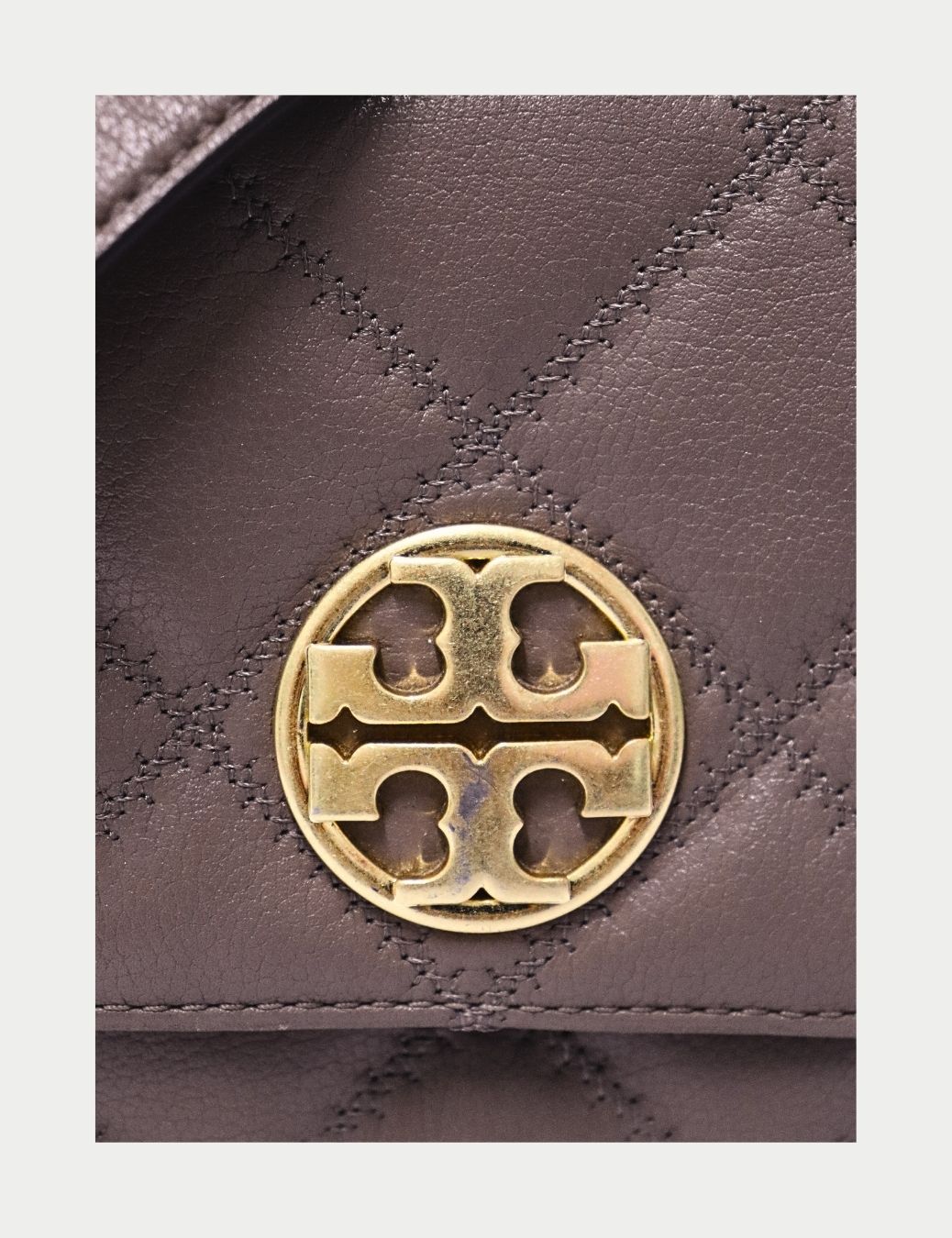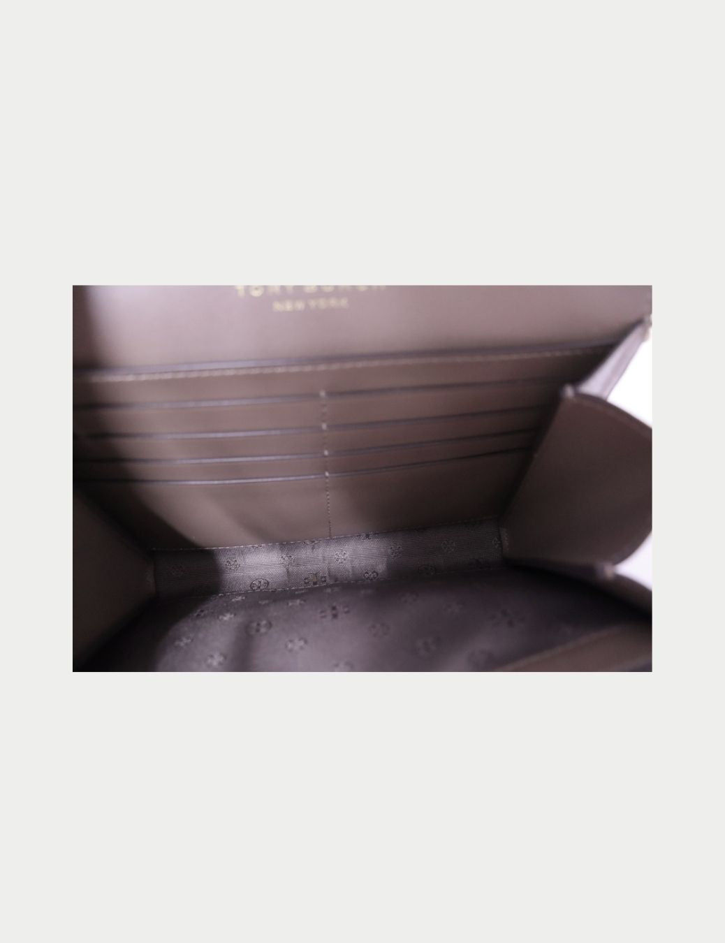 This timeless piece features a flap closure, detachable leather strap, and structured interior that keeps essentials organized while maintaining a refined profile. Perfect for day-to-night wear, it transitions seamlessly from casual brunches to evening outings — embodying Tory Burch’s blend of classic charm and modern luxury.