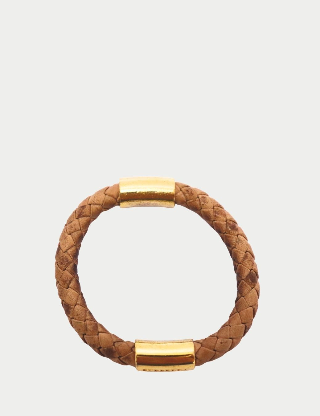 Burberry Braided Leather Bracelet – Brown (Gold-Tone Clasp)