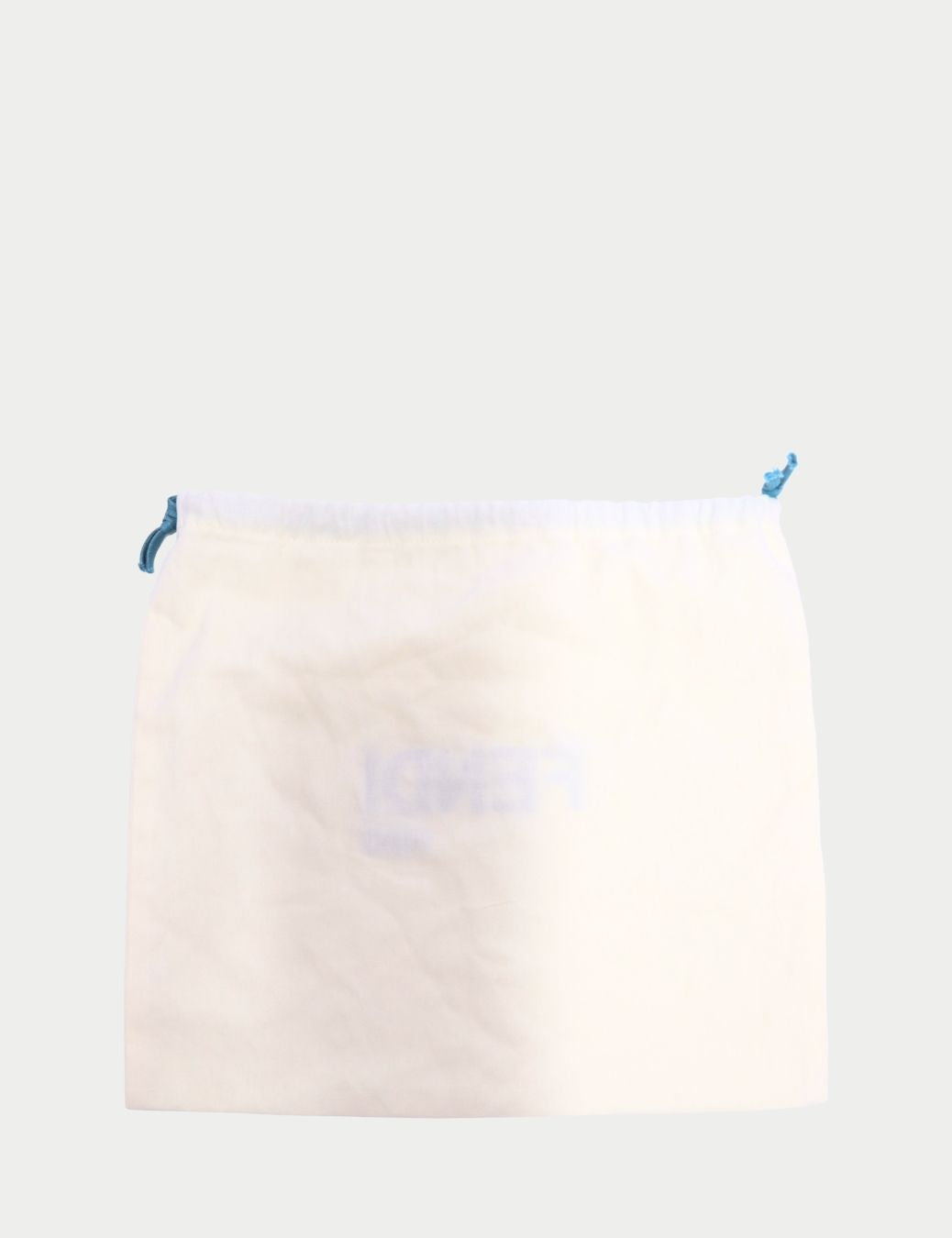 Fendi Kids white dust bag crafted from soft fabric with blue logo detailing, designed to protect and store children’s designer shoes or accessories neatly and safely.