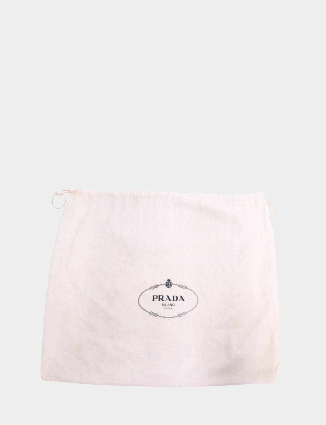 Authentic Prada Milano white fabric dust bag, ideal for protecting and storing your designer handbags or accessories. A practical luxury essential, available now at Fashion House Amman.