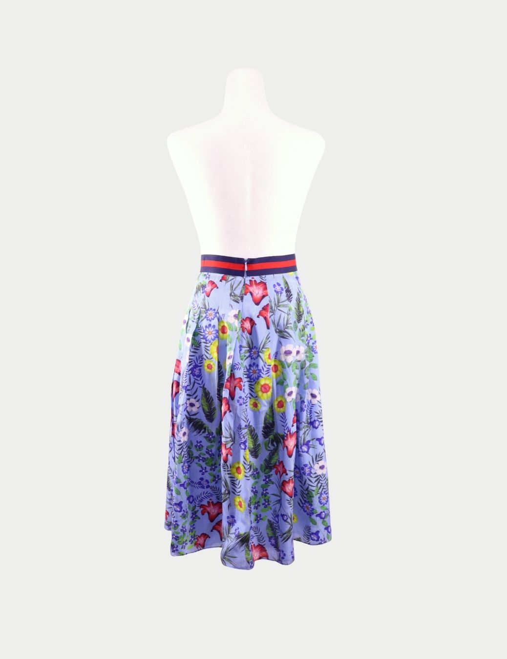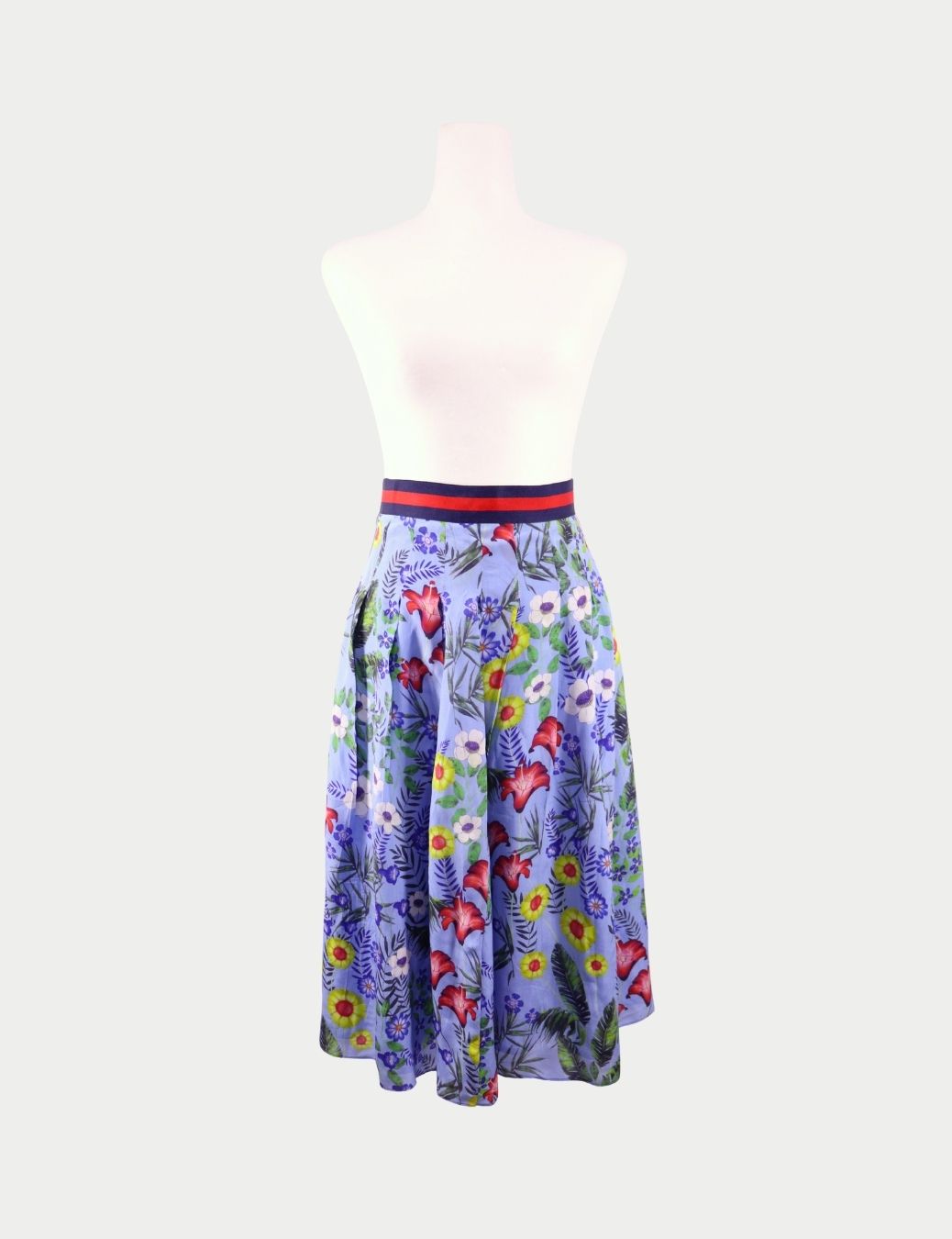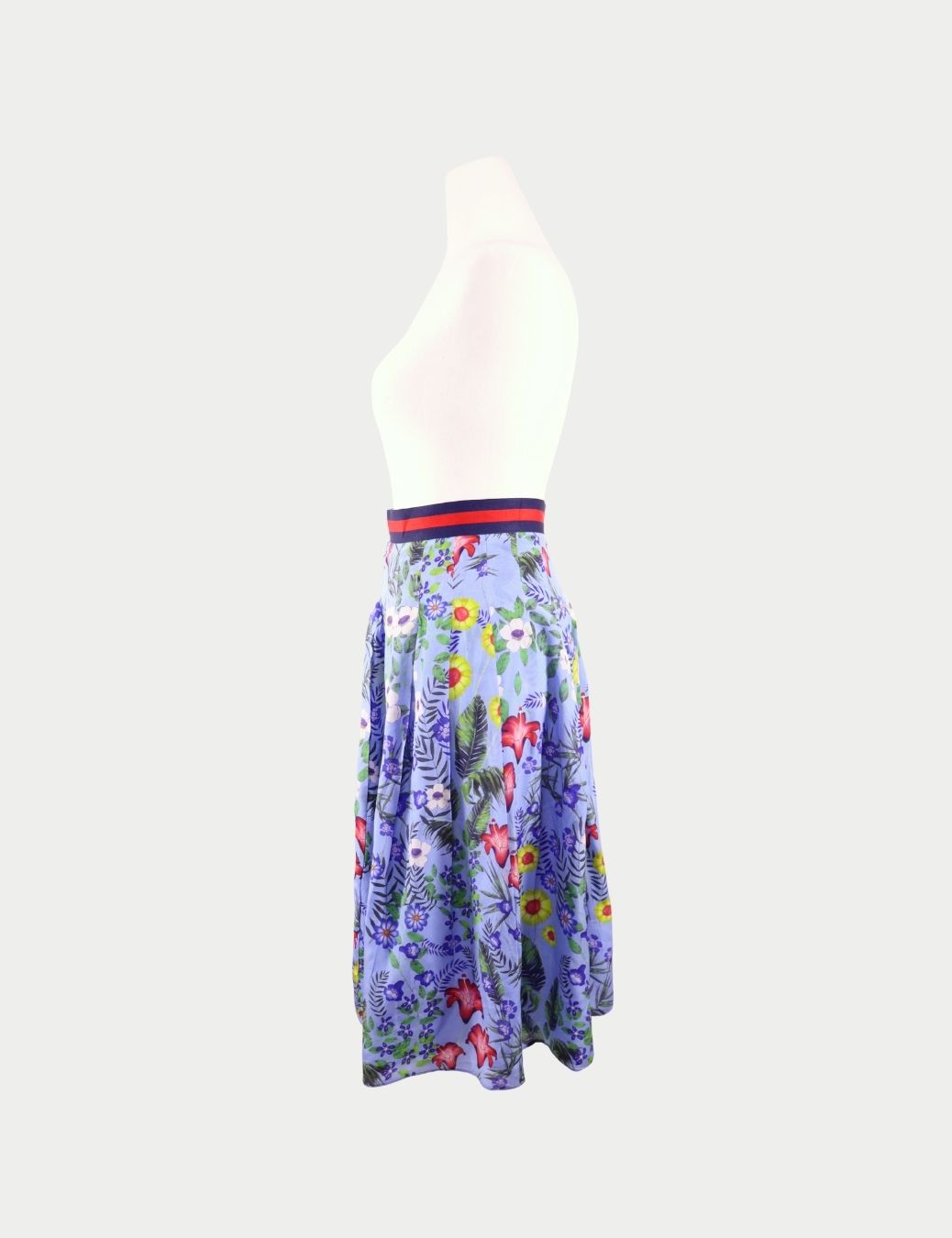 Gucci Blue Floral Print Midi Skirt with Web Waistband