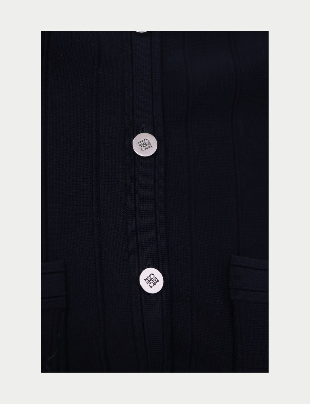 Sophisticated and timeless, this Carolina Herrera two-piece set is crafted in black knit fabric for an effortlessly polished look. The set includes a fitted cardigan-style top with round neckline, long sleeves, front pockets, and gold button detailing, paired with wide-leg trousers for a modern, elegant silhouette. Perfect for workwear, evening events, or chic daytime styling, this coordinated set embodies Carolina Herrera’s refined approach to luxury fashion.