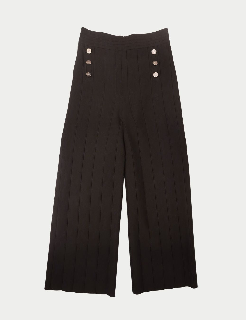 - Pants Details: High-waisted, wide-leg fit with matching button detail