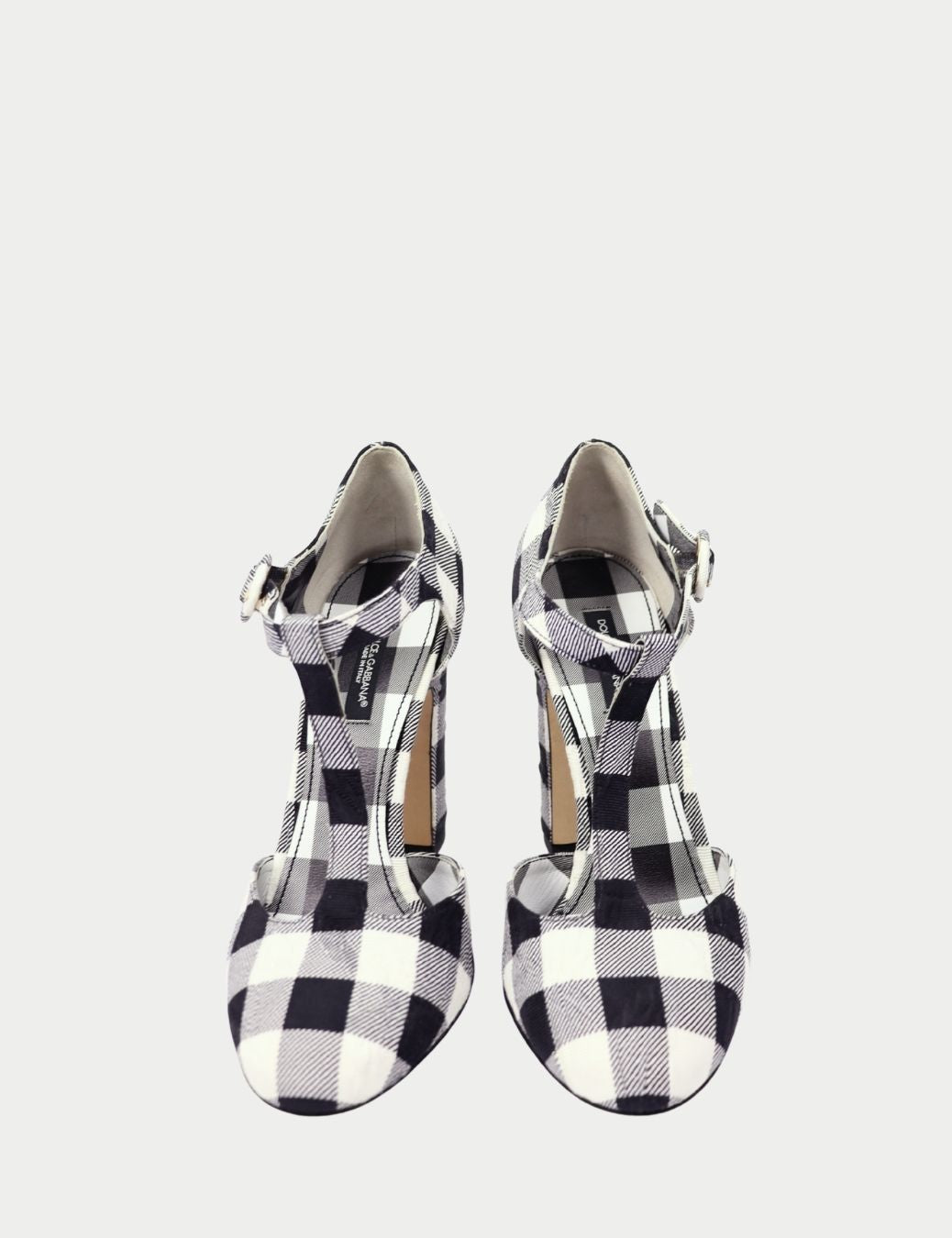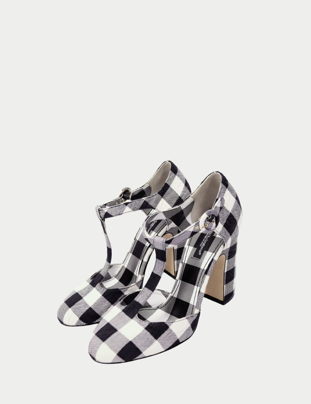 Dolce & Gabbana Black & White Gingham Round Toe Mary Jane Block Heel Sandals