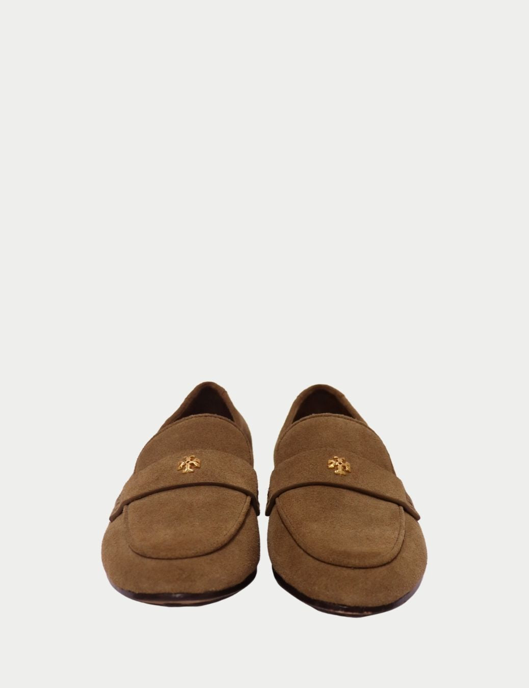 Tory Burch Tan Suede Loafers with Gold Logo Detail