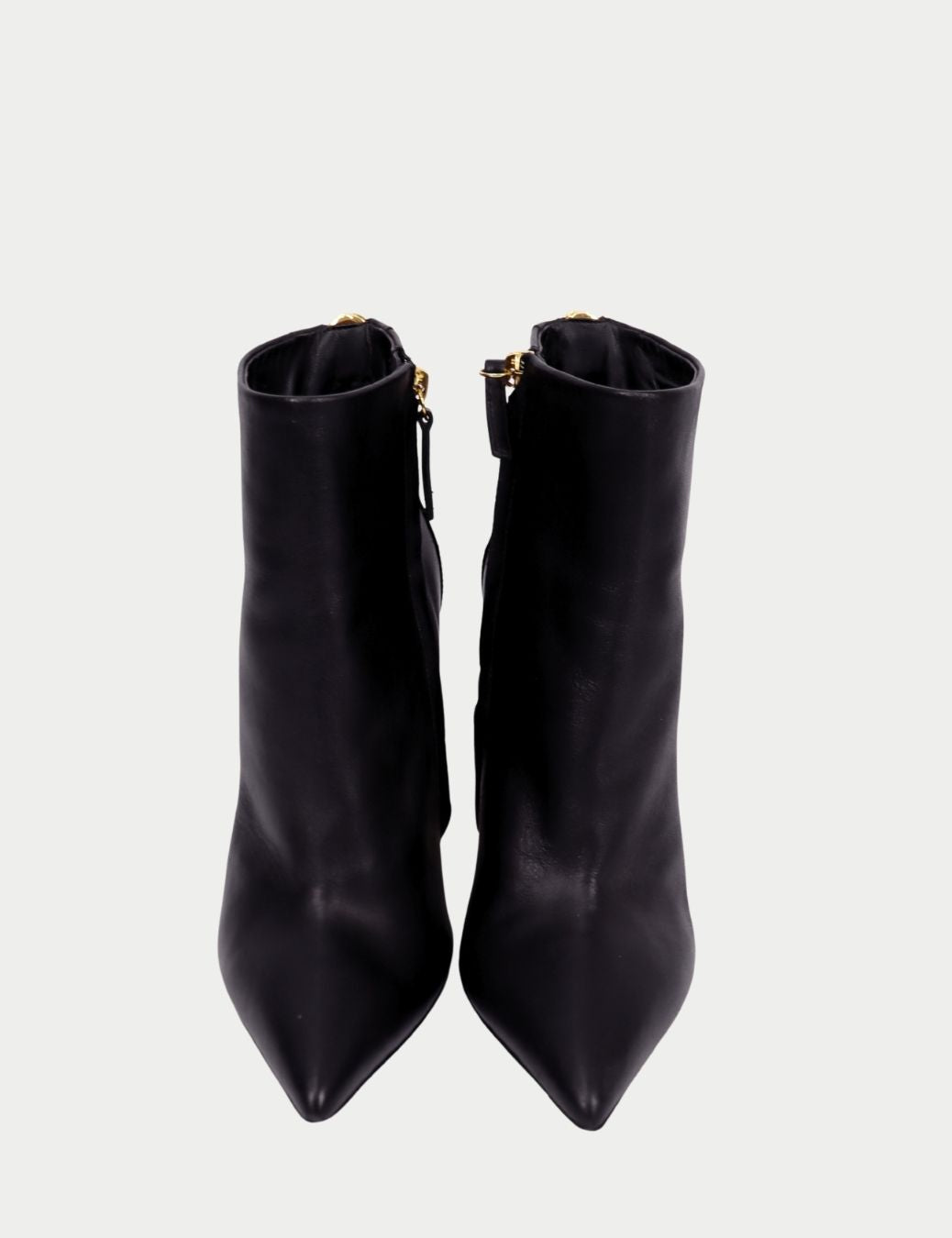 Bold and sophisticated, these Giuseppe Zanotti black leather ankle boots are designed to make a statement. Featuring a sharp pointed toe and a striking gold metallic block heel, they blend modern glamour with Italian craftsmanship. Perfect for elevating both daytime looks and evening outfits, these boots add instant polish and attitude to any wardrobe.