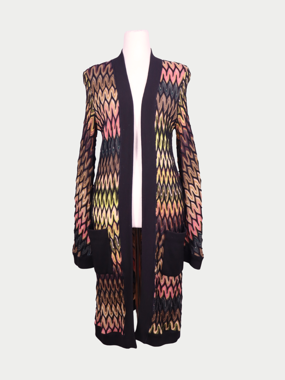 Missoni Multicolor Zigzag Knit Long Cardigan
