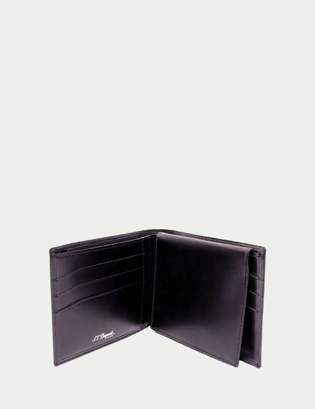 S.T. Dupont Black Leather Bi-Fold Wallet with Silver Logo Emblem