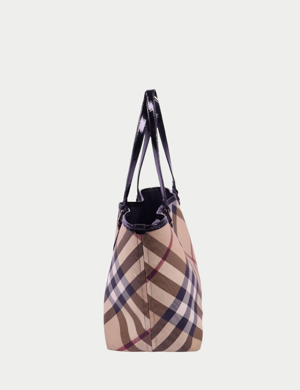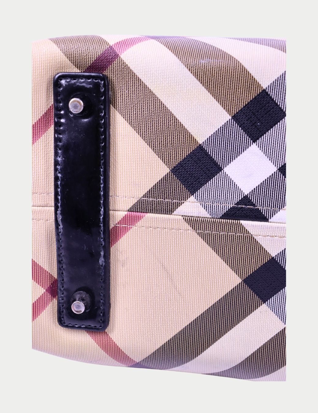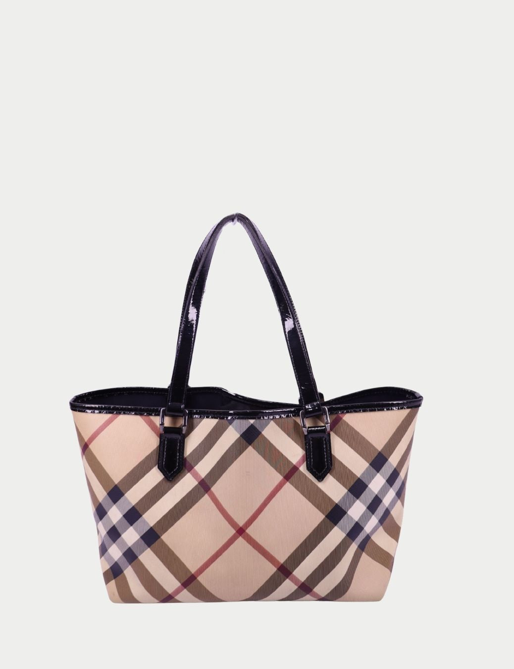 • Color: Beige Nova Check with black patent leather