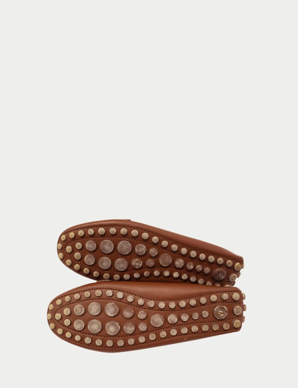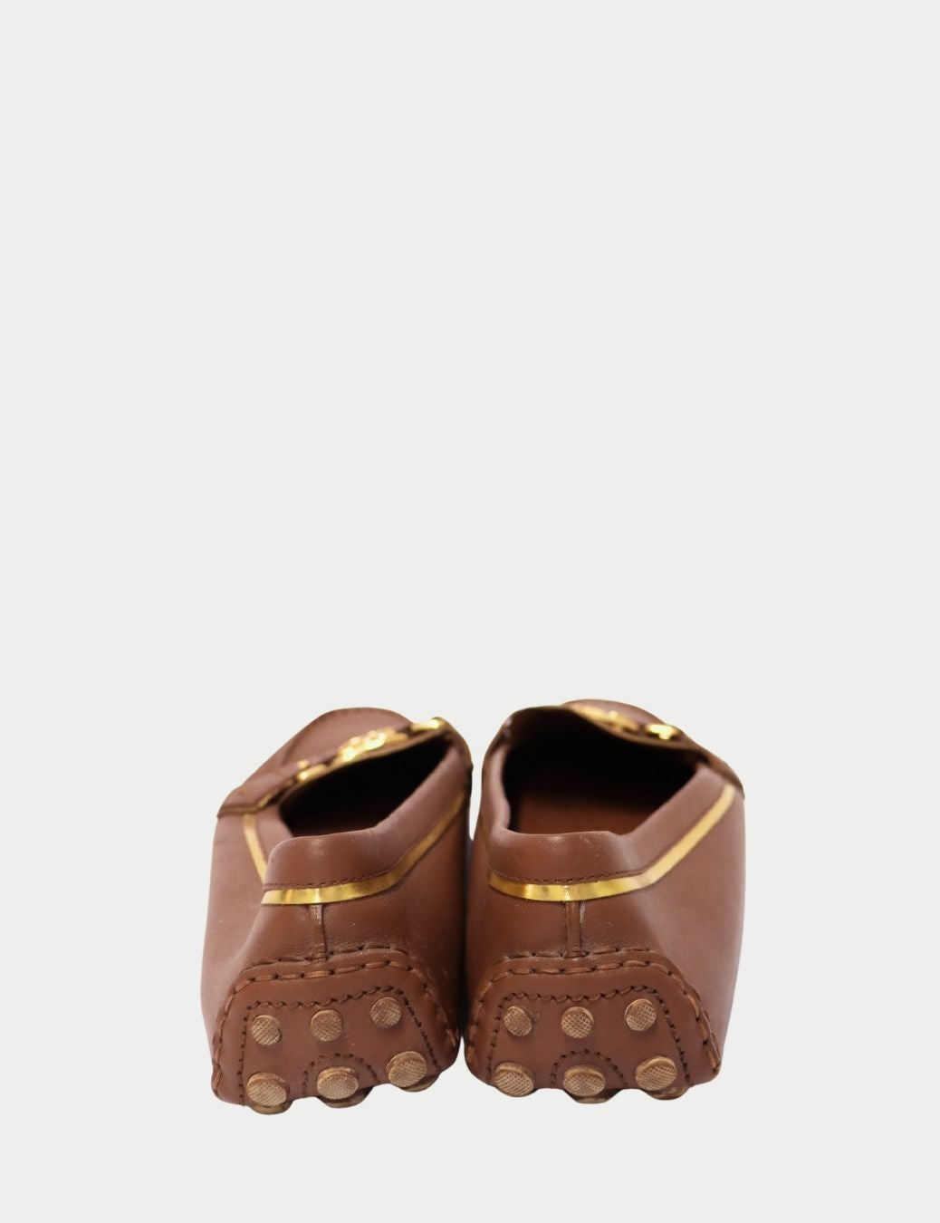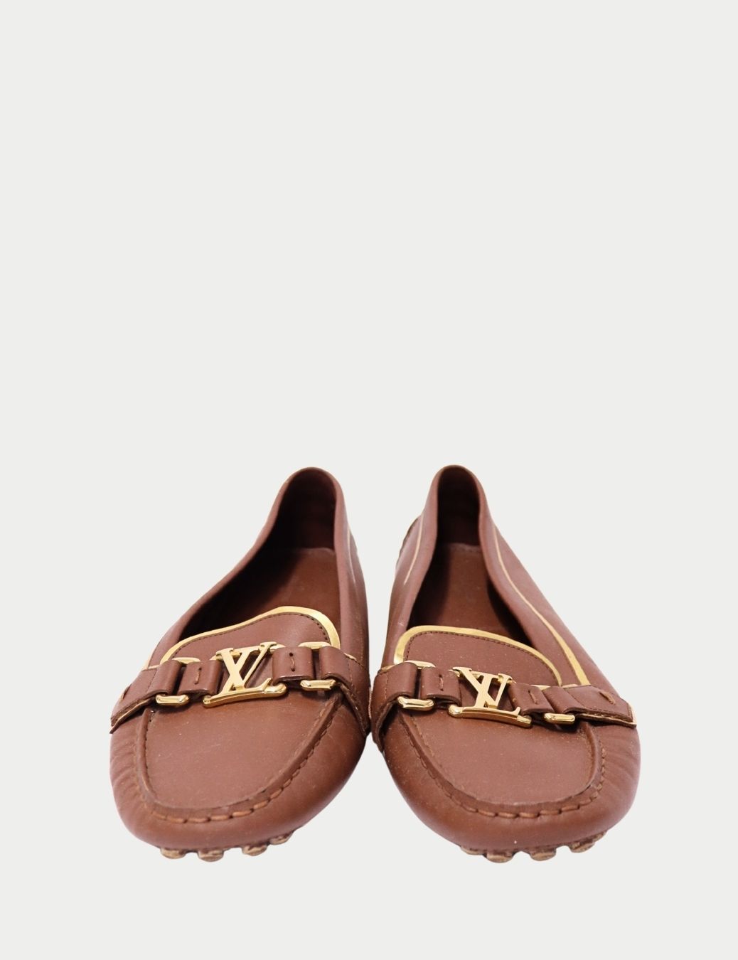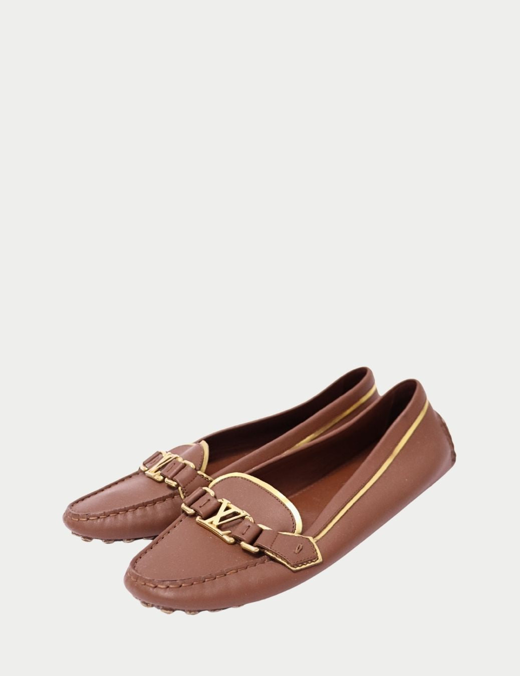 Louis Vuitton Brown Leather Loafers with Gold LV Hardware