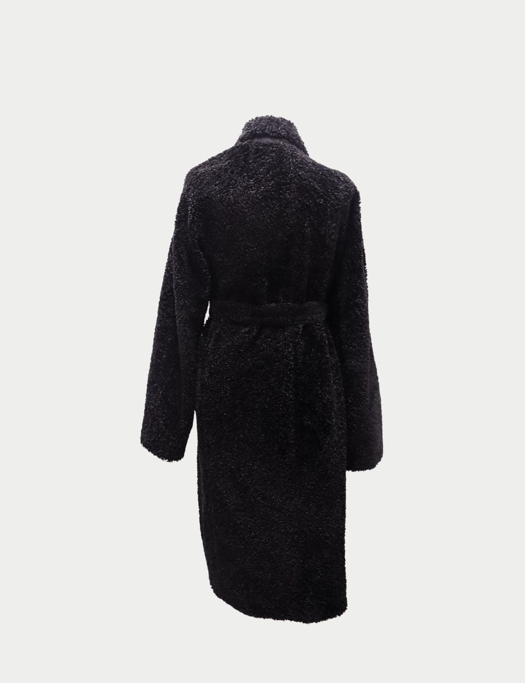 Timeless, elegant, and effortlessly luxurious — this Max Mara black wool wrap coat embodies the Italian house’s signature sophistication. Crafted from a plush wool blend with a soft textured finish, it features a classic shawl collar, long sleeves, and a self-tie belt that cinches the waist for a flattering silhouette.