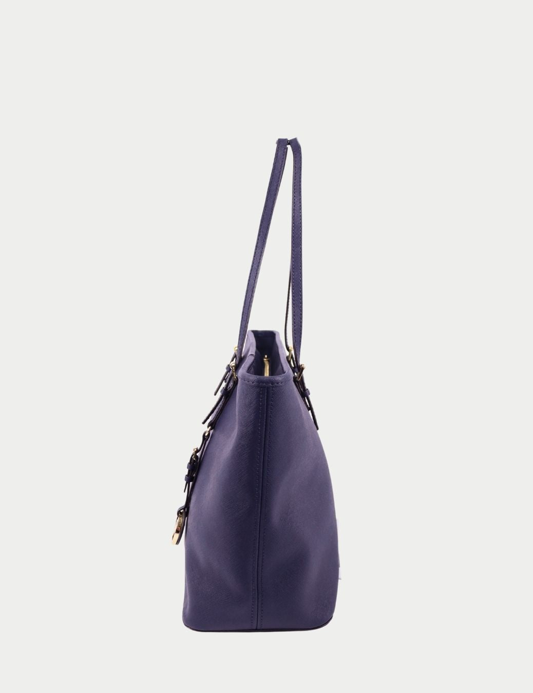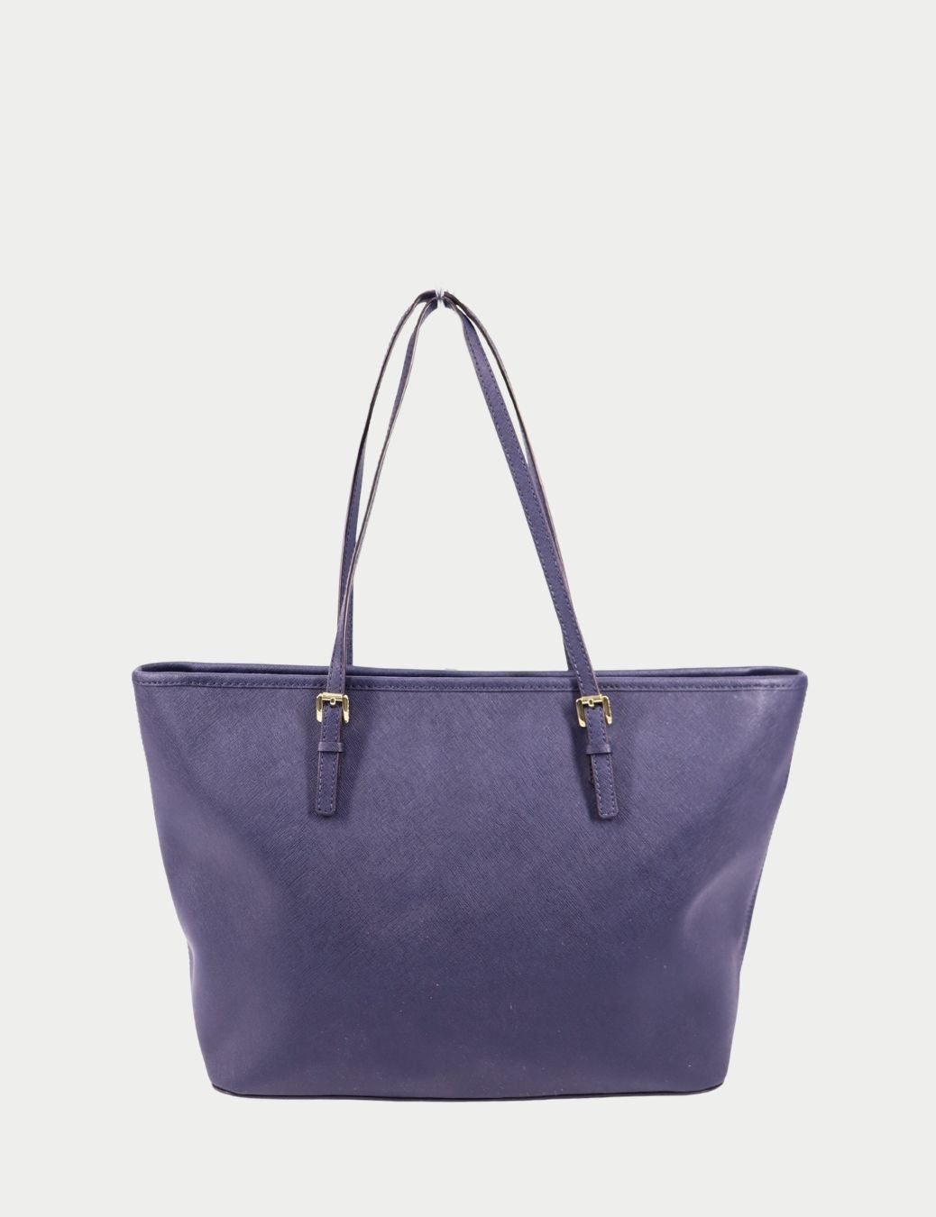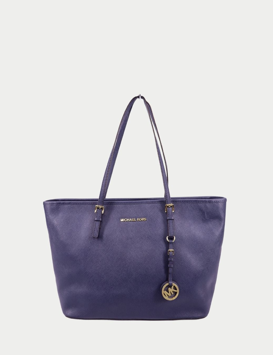 This classic Michael Kors tote features structured saffiano leather in a refined blue shade, complemented by gold-tone hardware and the iconic MK logo charm. The clean silhouette makes it ideal for work, travel, or daily errands while maintaining a polished designer aesthetic.