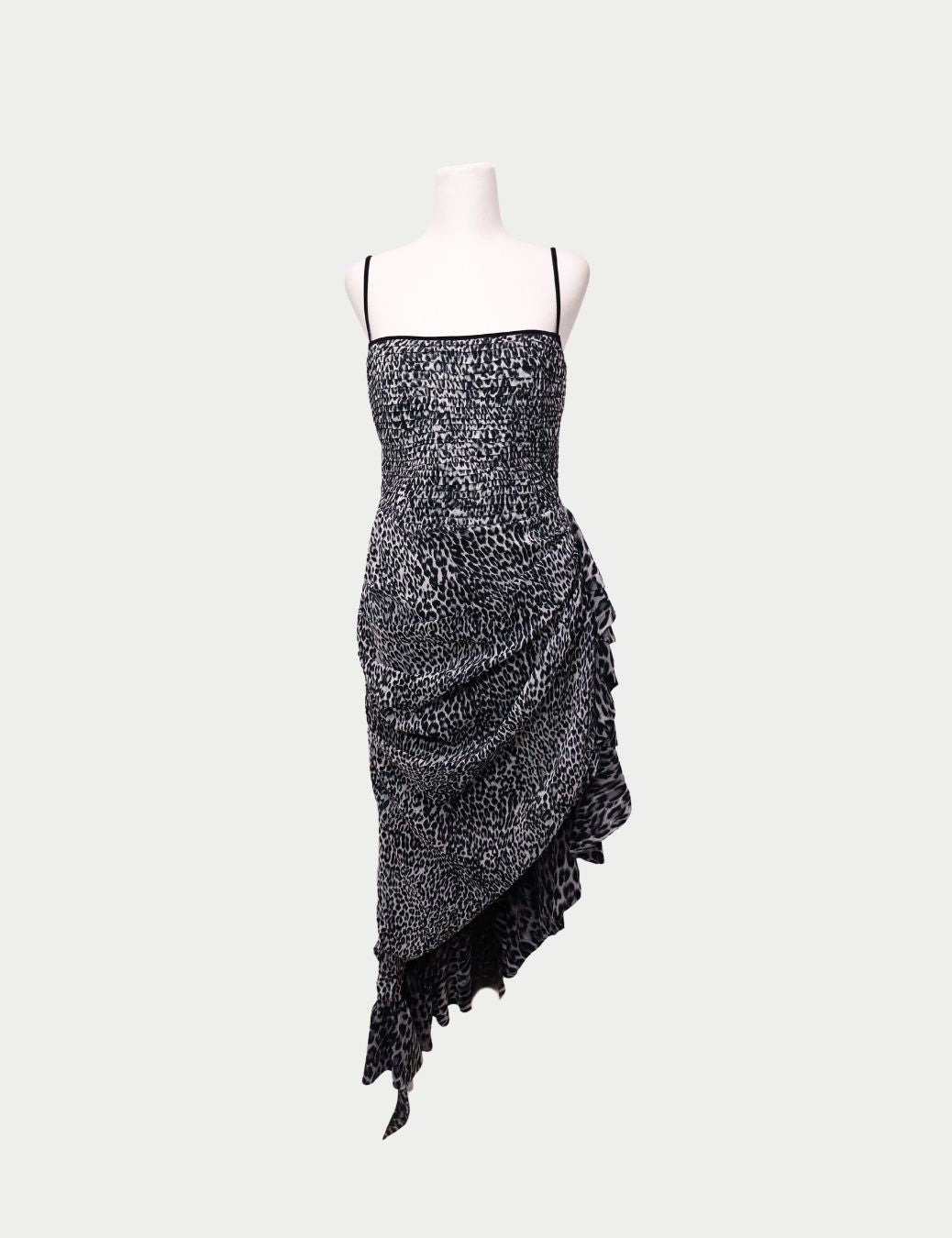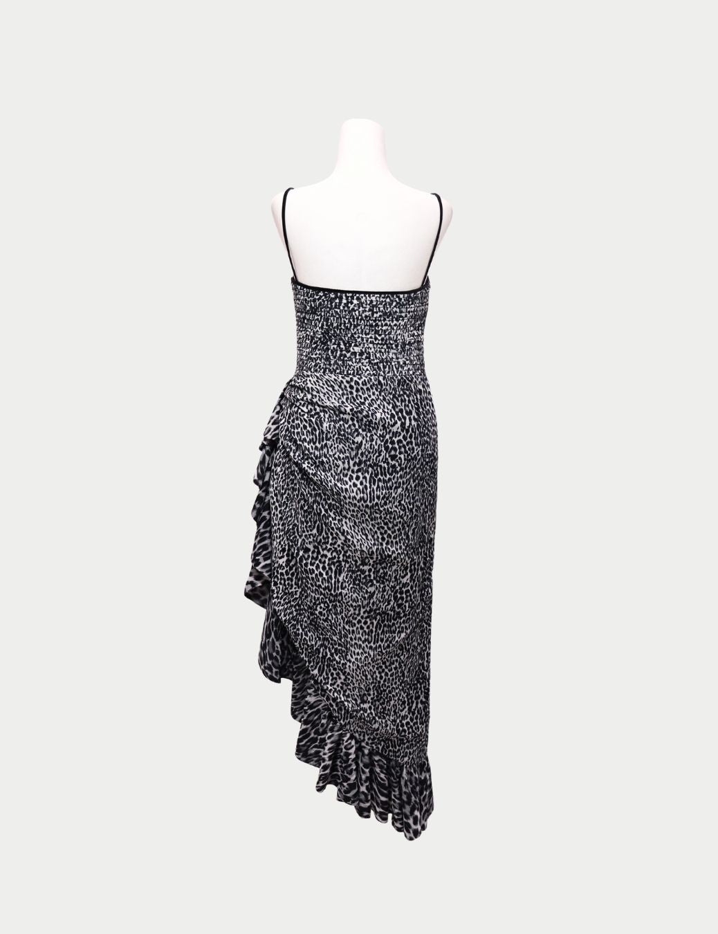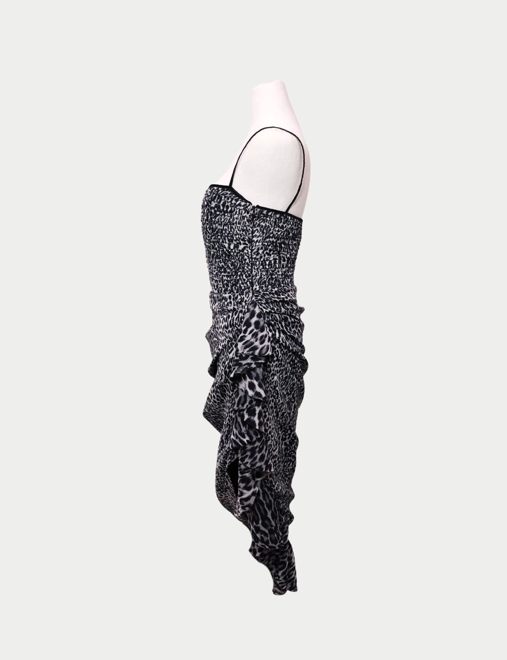 With its monochrome cheetah print and sensual draping, this dress embodies the essence of Rasario — unapologetically elegant and irresistibly confident. Ideal for evening events, cocktail parties, or red-carpet moments.