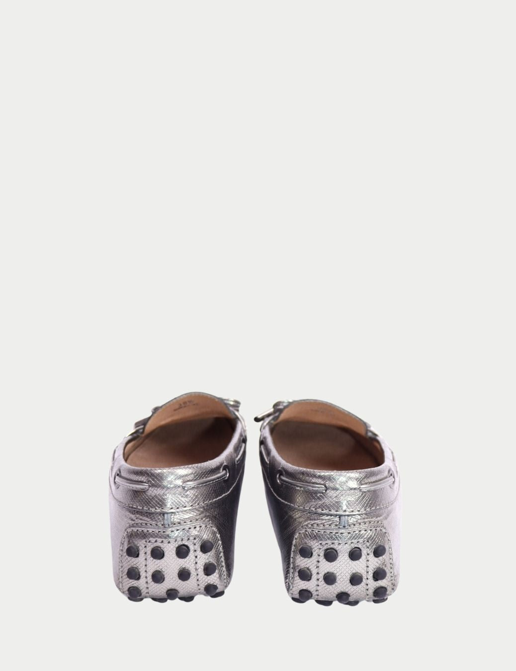 Tod’s Silver Metallic Leather Gommino Driving Loafers