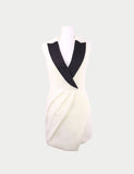 This exquisite Costarellos evening gown showcases the brand’s signature mastery of draping and fluid movement. Crafted from lightweight silk fabric, the design features a deep V-neckline with gathered detailing at the bodice, creating a flattering, sculpted silhouette.
