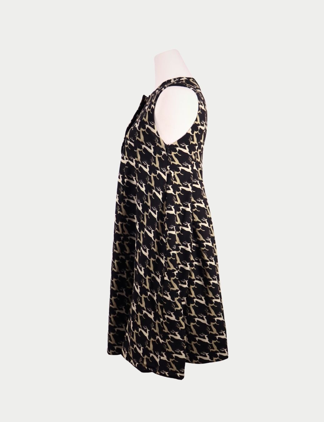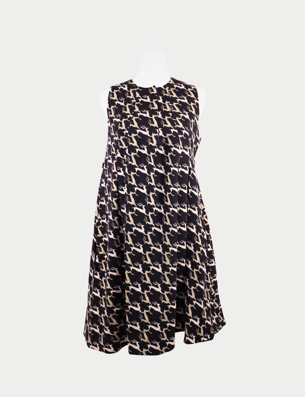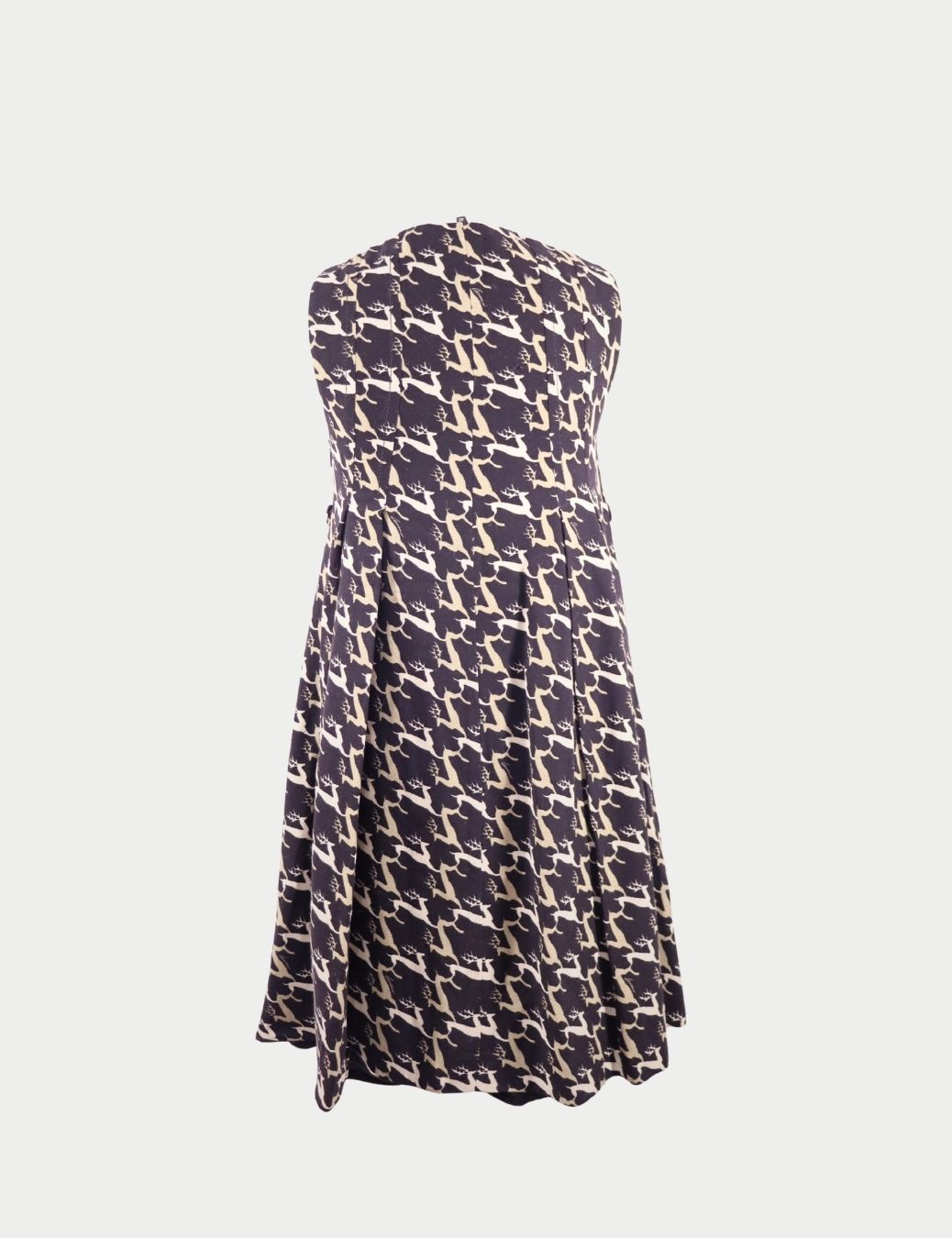 This authentic Gucci dress showcases the brand’s signature flair for bold yet timeless design. Crafted in a lightweight fabric, the dress features an all-over graphic print and a sleeveless cut that flows into a relaxed A-line silhouette.