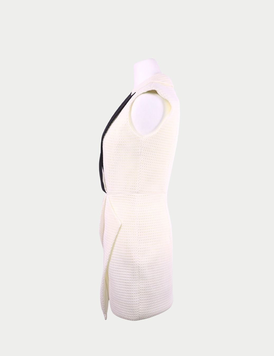 Self-Portrait White Textured Wrap-Style Dress with Black Lapel Detail