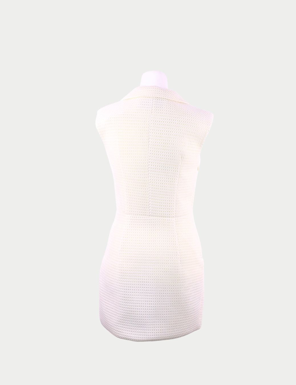 This Self-Portrait white dress is a perfect balance of modern tailoring and feminine elegance. Crafted from a textured fabric, it features a wrap-style silhouette that flatters the figure while creating clean, architectural lines.