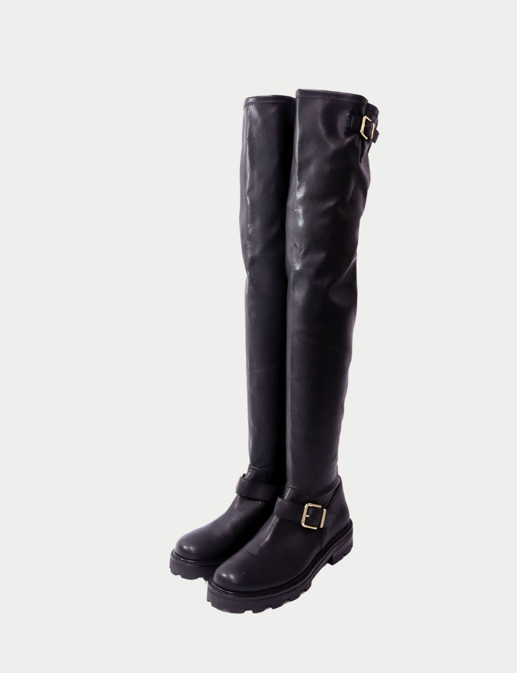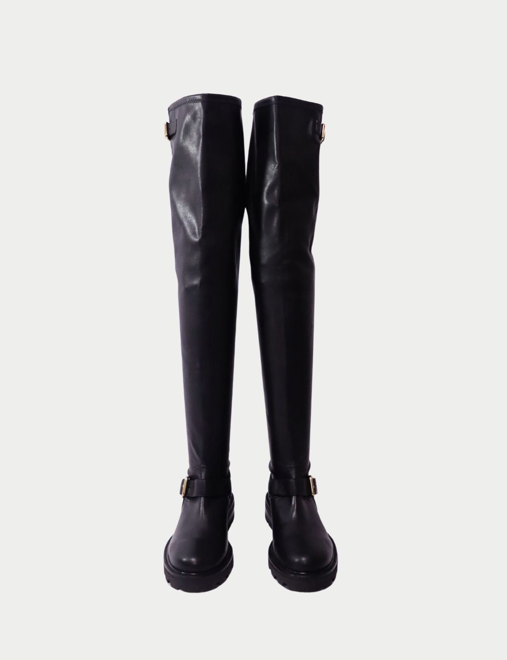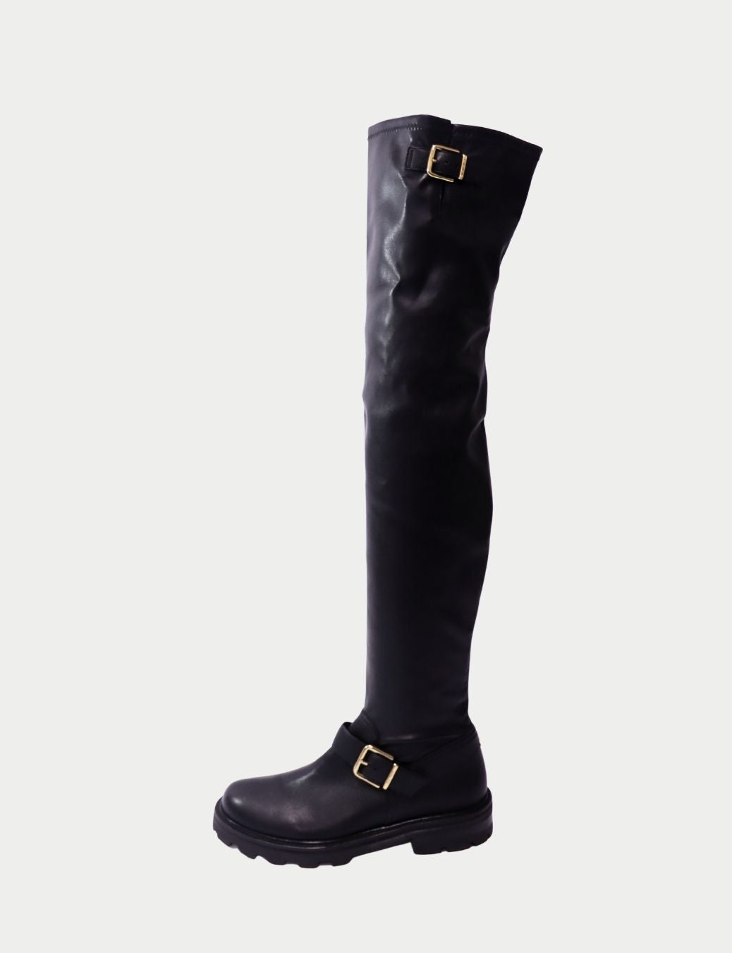 • Style: Over-the-Knee Leather Boots with Buckle Detail