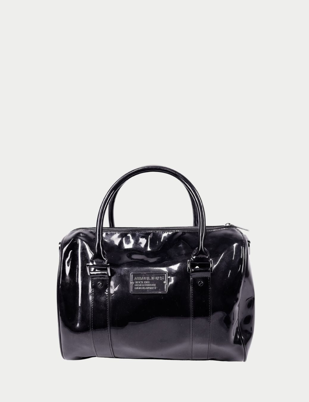 The classic Boston shape provides generous interior space while maintaining a polished, feminine profile. Finished with silver-tone hardware and the signature Armani Jeans logo plaque, this bag is perfect for both daytime wear and evening outings.