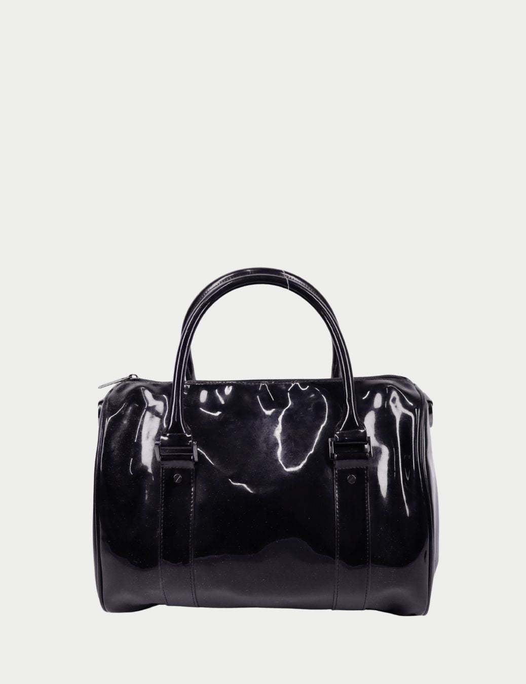 Elevate your everyday style with this striking Armani Jeans Metallic Patent Leather Boston Bag. Designed in a rich deep purple tone with a high-gloss patent finish, this structured silhouette offers a contemporary yet timeless aesthetic.