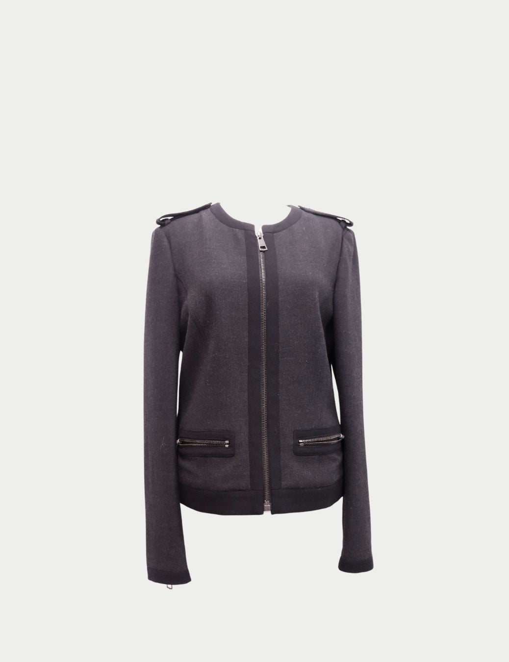 Burberry London Charcoal Zip-Up Jacket with Epaulettes