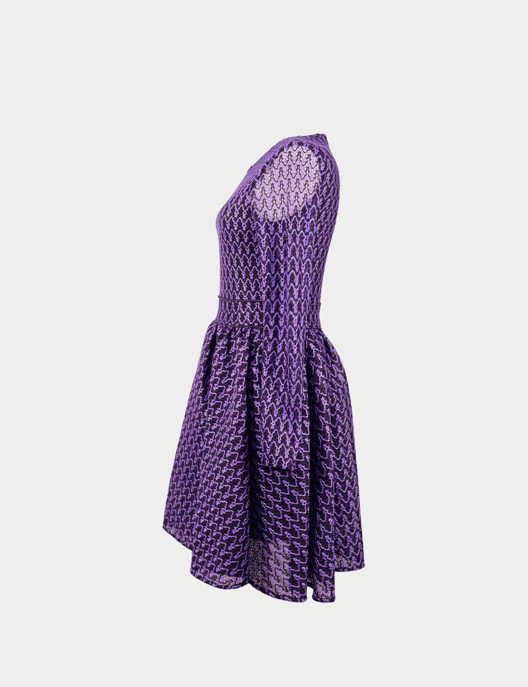 Chic and effortlessly feminine, this Maje purple patterned long-sleeve dress features a flattering fitted waist and softly flared skirt that creates beautiful movement. The intricate all-over pattern and refined silhouette make it perfect for day-to-night styling — ideal for dinners, events, or elevated everyday wear.