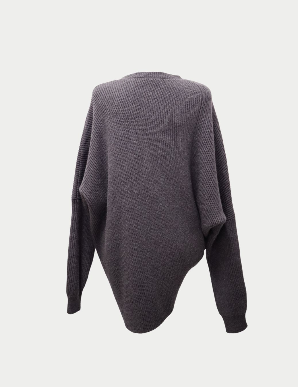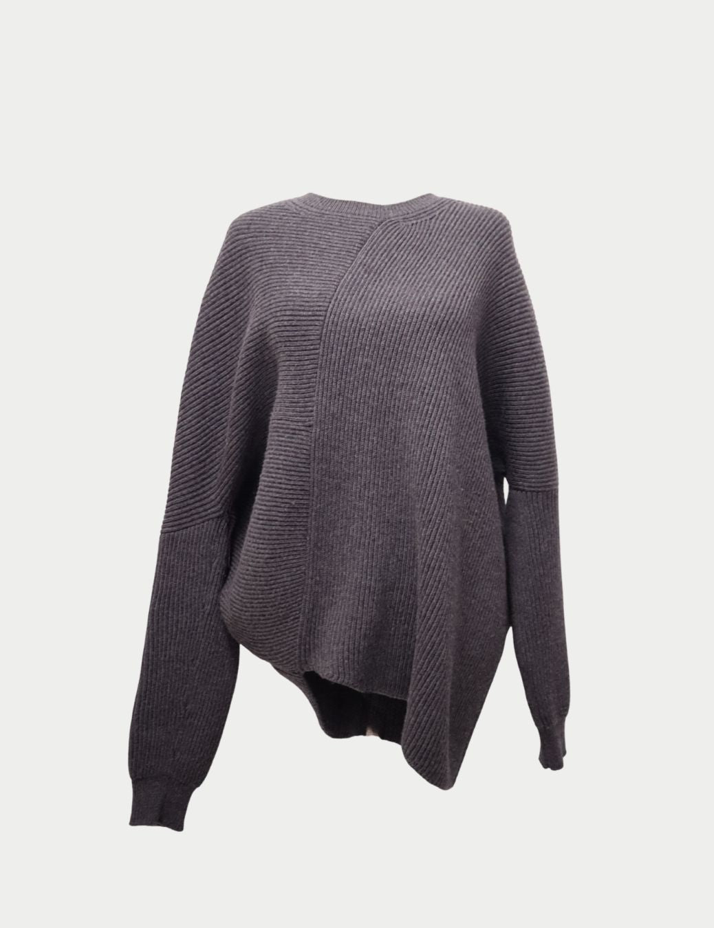 Wrap yourself in elevated comfort with this authentic Stella McCartney oversized sweater, crafted in a rich charcoal grey rib-knit. The design features Stella’s signature blend of minimalism and modernity, with an asymmetric rib pattern, soft texture, and elegant drape that flatters every figure.