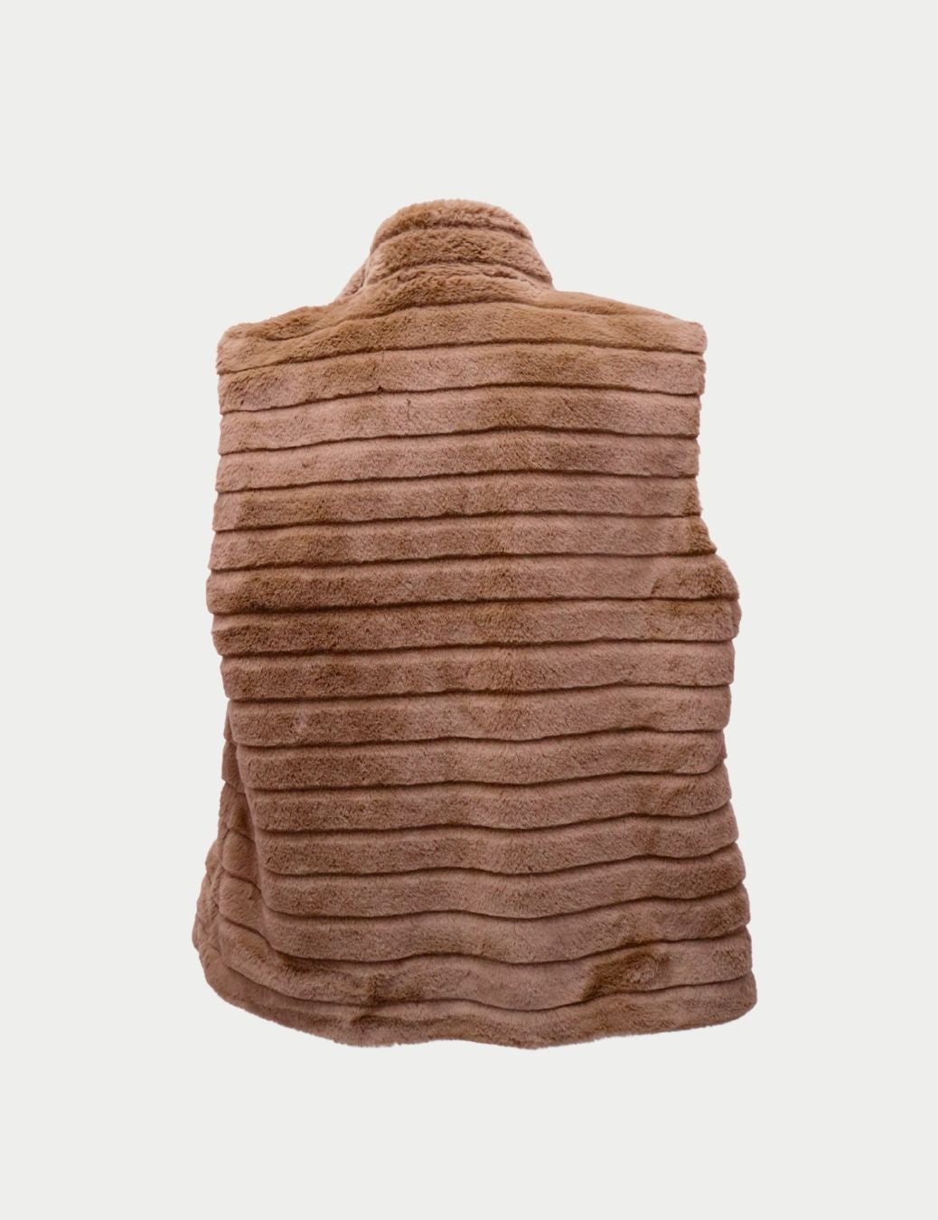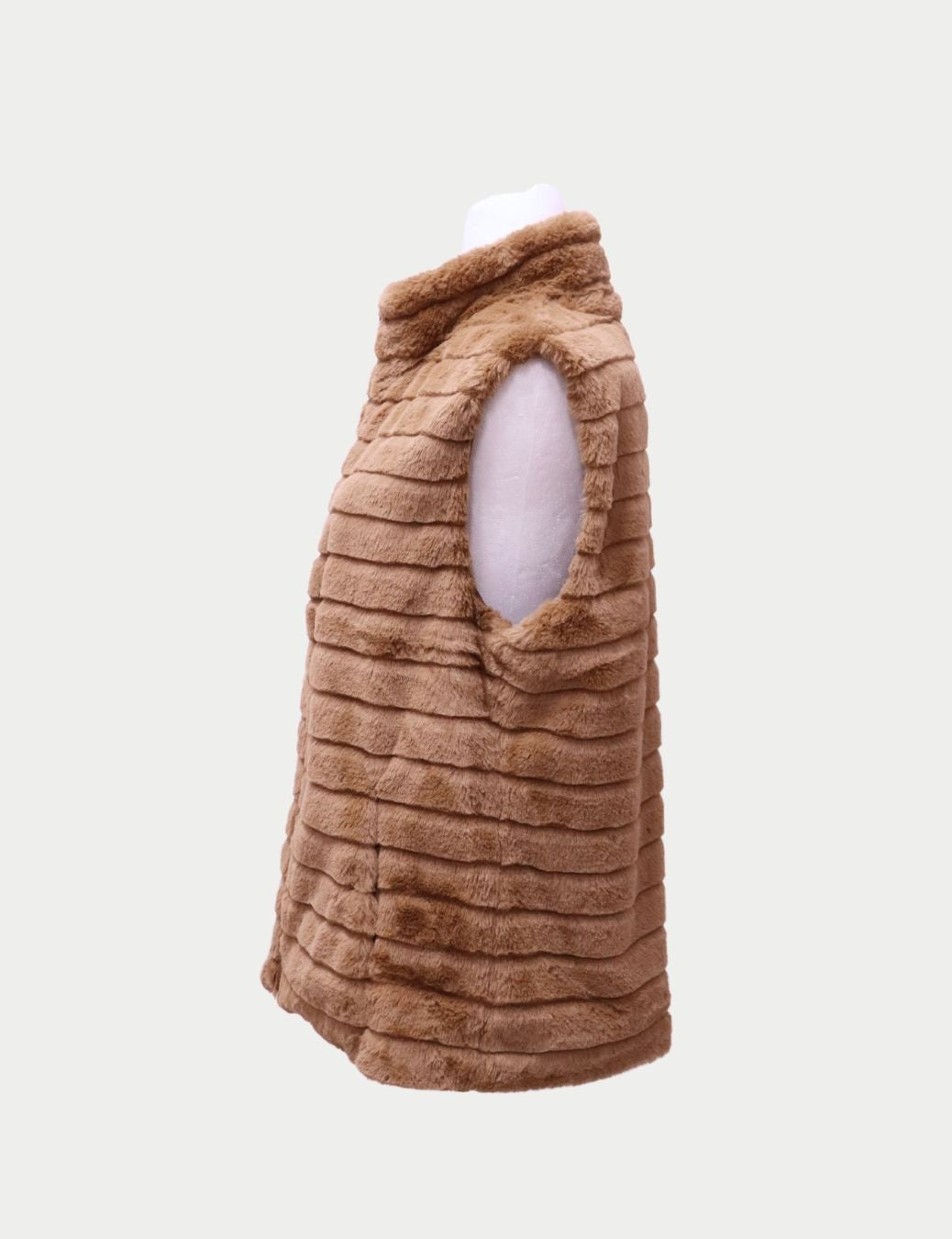 Tuzzi Tan Faux Fur Vest – Zip-Up Sleeveless Jacket