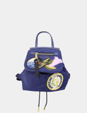 Add a touch of bold sophistication to your look with this Versace Jeans shoulder bag. Crafted in deep navy faux leather, this structured design features a sleek front zip pocket, silver-tone logo hardware, and pastel color-blocked side panels for a playful twist. The double-chain strap with a leather shoulder pad adds both edge and comfort, making it perfect for hands-free chic. Compact yet functional, it’s your ideal day-to-night accessory.